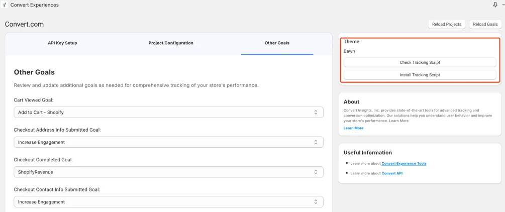 Important note: If goals are not created in Convert, they will not appear in the Shopify app dropdown.