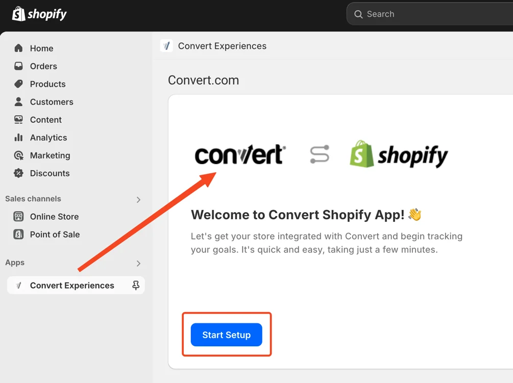 - In Shopify Admin, go to Apps → Convert Experiences